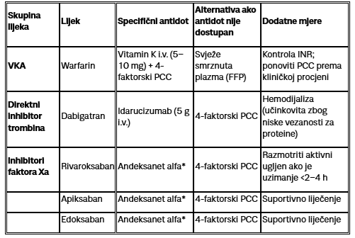 U slučaju životno ugrožavajućih stanja kod velike većine bolesnika indicirana je žurno poništavanje antikoagulancije. Kod VKA i dabigatrana postoje dobra terapijska rješenja koja vrlo brzo i učinkovito (2-30min) poništavaju efekt antikoagulancije, dok za inhibitore Xa faktore ne postoje specifični antidoti. Svakako treba istaknuti da je kod liječenja takvih bolesnika također ključno i suportivno liječenje (nadomjesno liječenje kristaloidima, transfuzijski suport).