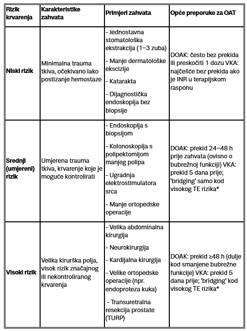 Kod procjene rizika od značajnog kliničkog krvarenja, uzimamo u obzir činjenicu o kojem se zahvatu točno radi, budući da ne nose svi zahvati jednak rizik krvarenja.